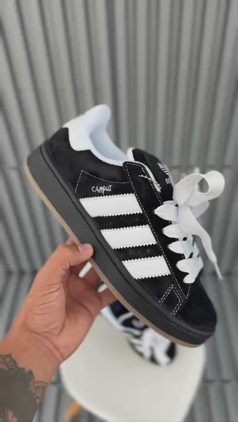 Adidas Campus negra blanca suela en goma